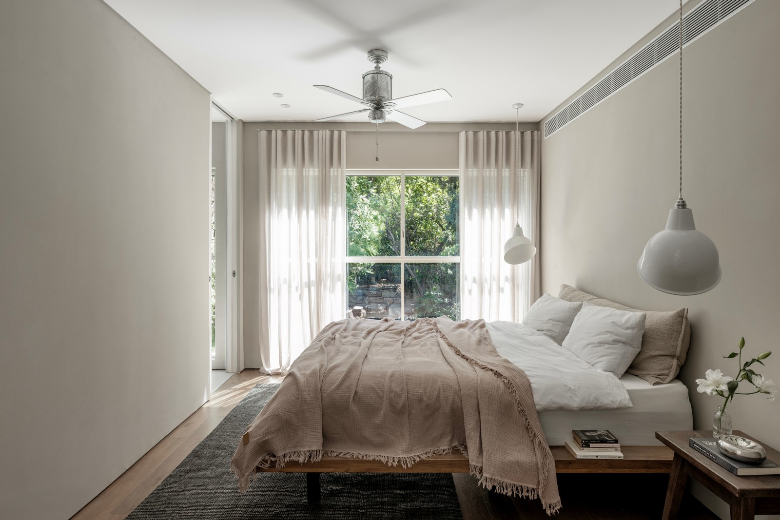 מאחר שמדובר בביתם של שני רופאים, היה חשוב שחדר השינה שלהם ישרה רוך ויטעין אותם באנרגיות. המעברים רחבים ונוחים, חדר הארונות ממוקם מאחורי המיטה והחדר בכללותו משופע בטקסטיל. יחידת הכיור בחדר הרחצה במידות מפוארות מעץ מפירוק עם מראה ענקית המשלבת תאורה בתוך מסגרת מברזל. בחדר הילדים מיטת קומתיים. כל החדר נצבע בגוון ירקרק, כולל המיטה. הארונות מעץ בירץ' למראה ילדי קליל ועל זמני, והאחסון רב אבל מינימליסטי.
