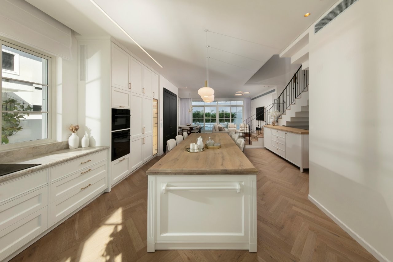 לאורך כל הפרויקט נשמר עיקרון ברור: שילוב עדין בין עץ ללבן, בין קלאסי למודרני, בלי אלמנטים צעקניים ובלי הצהרות מיותרות. זהו בית שמתבסס על פרופורציות, חומרים ואור – כזה שמרגיש חמים, משפחתי ומדויק, גם כשהוא אלגנטי ומוקפד.
