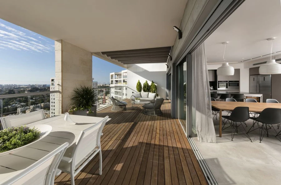אחרי שנים של מגורים בעיר יפו בחרו בני הזוג בשנות ה-60 לחייהם, שילדיהם עזבו את הקן, לעבור לדירת פנטהאוז תל-אביבית ששטחה 200 מ"ר. את התכנון הקבלני מחליף חדש שנאמן במדויק לצרכיהם, טעמם ואופיים אותו יצרה מעצבת הפנים ענבל ברקוביץ.