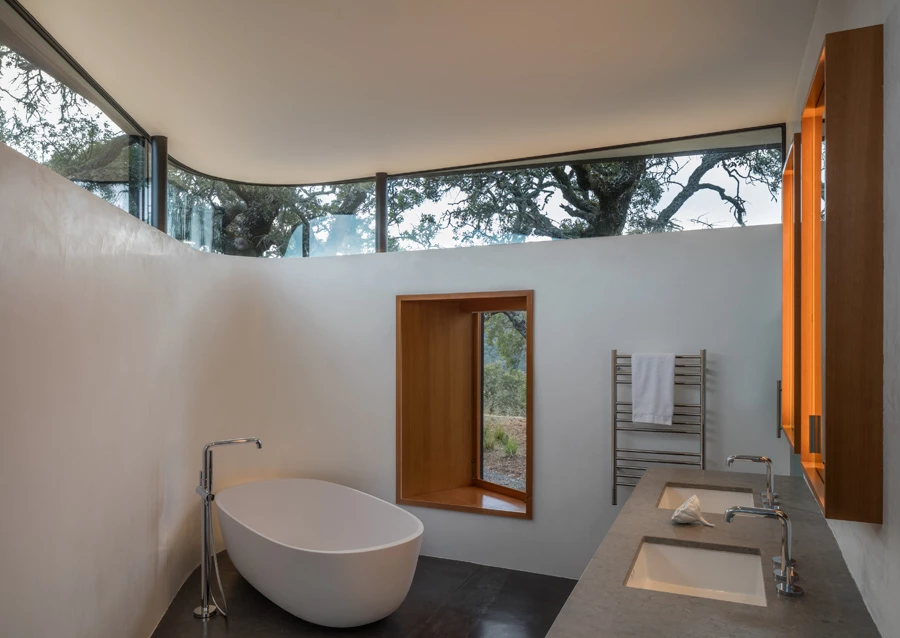 כנפי הבית מתפשטות לעבר הנופים הנרחבים שמתפרסים מדרום וממערב. כל חדר מכוון בזהירות למיקרו-האקלים המיוחד שלו תוך התייחסות ספציפית לשמש, לאיכות האור ולזרימת האוויר. סדרה של גנים ושטחים פתוחים משתלבת בהרמוניה עם כל אזור בבית.