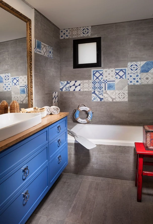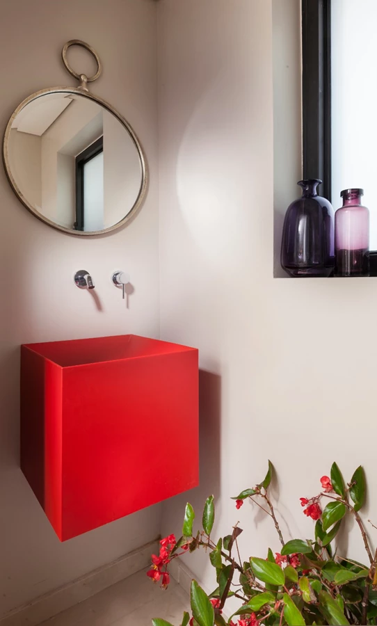 לצבעוניות בחללים השונים יש תפקיד ויזואלי מרכזי. וינברן בחרה בצבעוניות קלידוסקופית קלילה ומזמינה. בין שלל הצבעים בולטים במיוחד גוונים של כחול ים ששולבו בנגרויות, באריחים ובטקסטיל, גוונים של אדום הבולטים במנורות הפזורות במרחב ואלמנטים נוספים, גוונים של צהוב בספרייה ועוד. עם זאת, הבית רחוק מלהיראות עמוס או מצועצע. נגיעות הצבע הן מידתיות ומעצימות היטב את הזרימה. המראה שמתקבל הוא רך והרמוני ועם זאת דינמי וחוויתי.